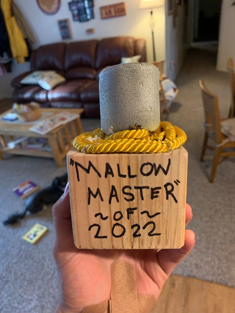 So I have an embarrassing story. It starts with an idea our Youth Group had. You see we had planned to do an all church activity that we would run and the idea that someone in our group pitched was to do a marshmallow roasting contest. Not just any marshmallow roasting contest. A very serious contest where we would analyze 4 criteria of an excellent marshmallow: gooeyness, crispiness, color, and symmetry. It was a great idea. I would even say it was brilliant, but it needed something. You can’t have this serious of a contest and not give away an award. So I decided to make a trophy. I made the trophy the day of the event, in a hurry, in my dad’s garage, with a staple gun which I thought wasn’t working. In my attempts to fix the staple gun I stapled my hand. It was an honest mistake that cost my hand dearly. Stapled hand aside the event was a success.